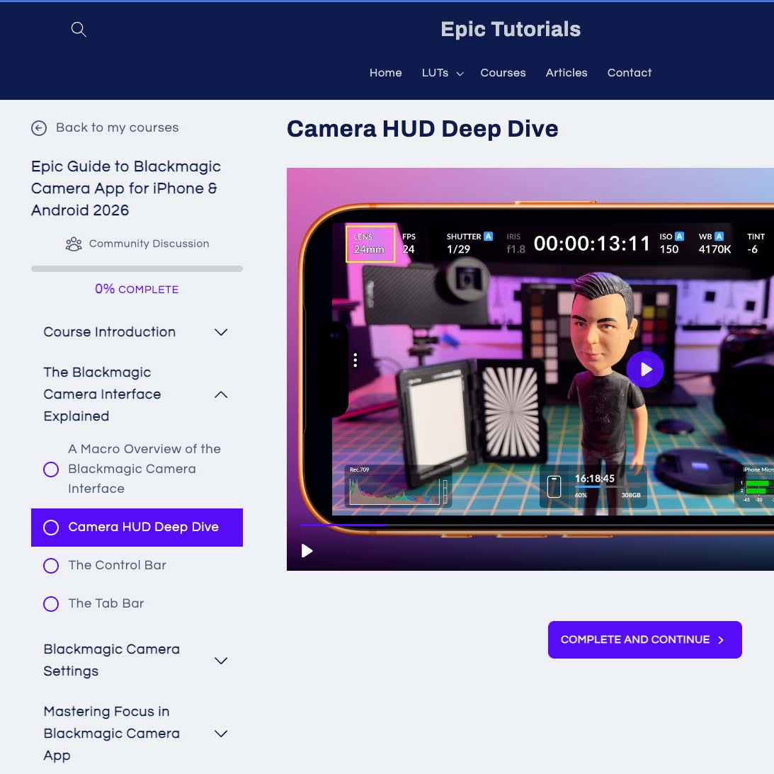At launch, you get immediate access to 12 in-depth video lessons covering the Blackmagic Camera interface, Settings, and Focus controls.