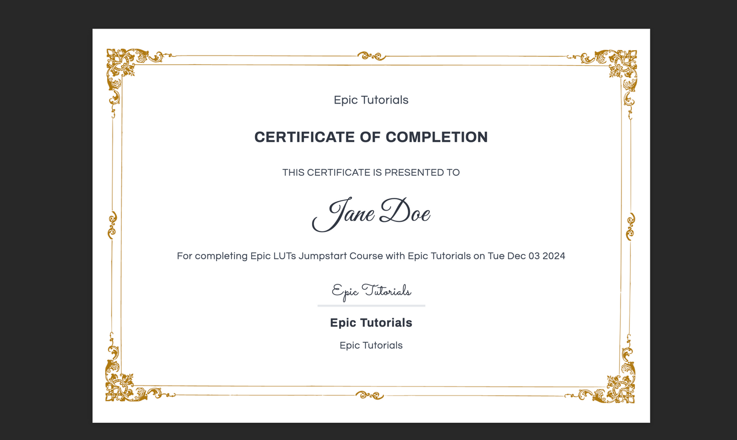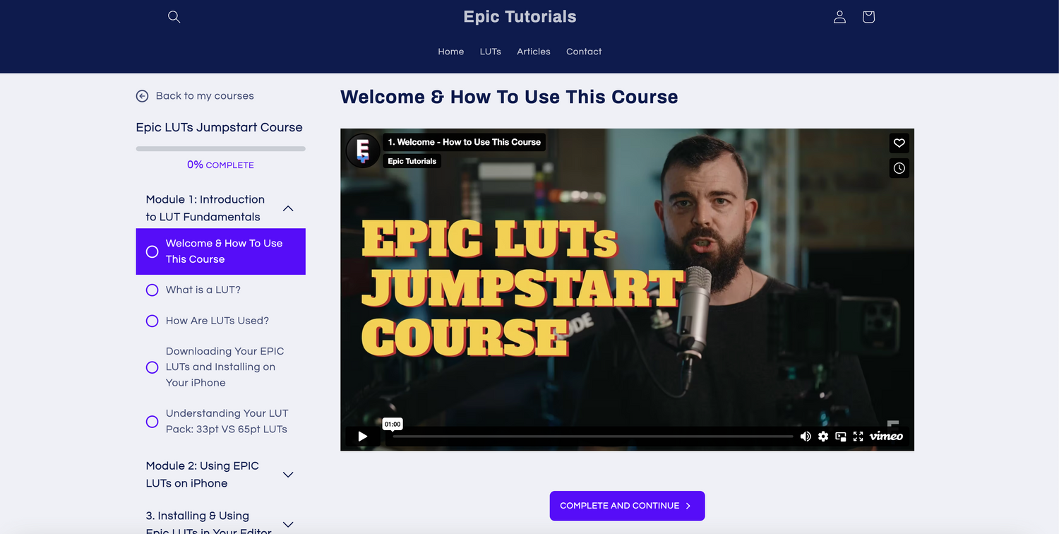 Epic LUTs Jumpstart Course Outline
